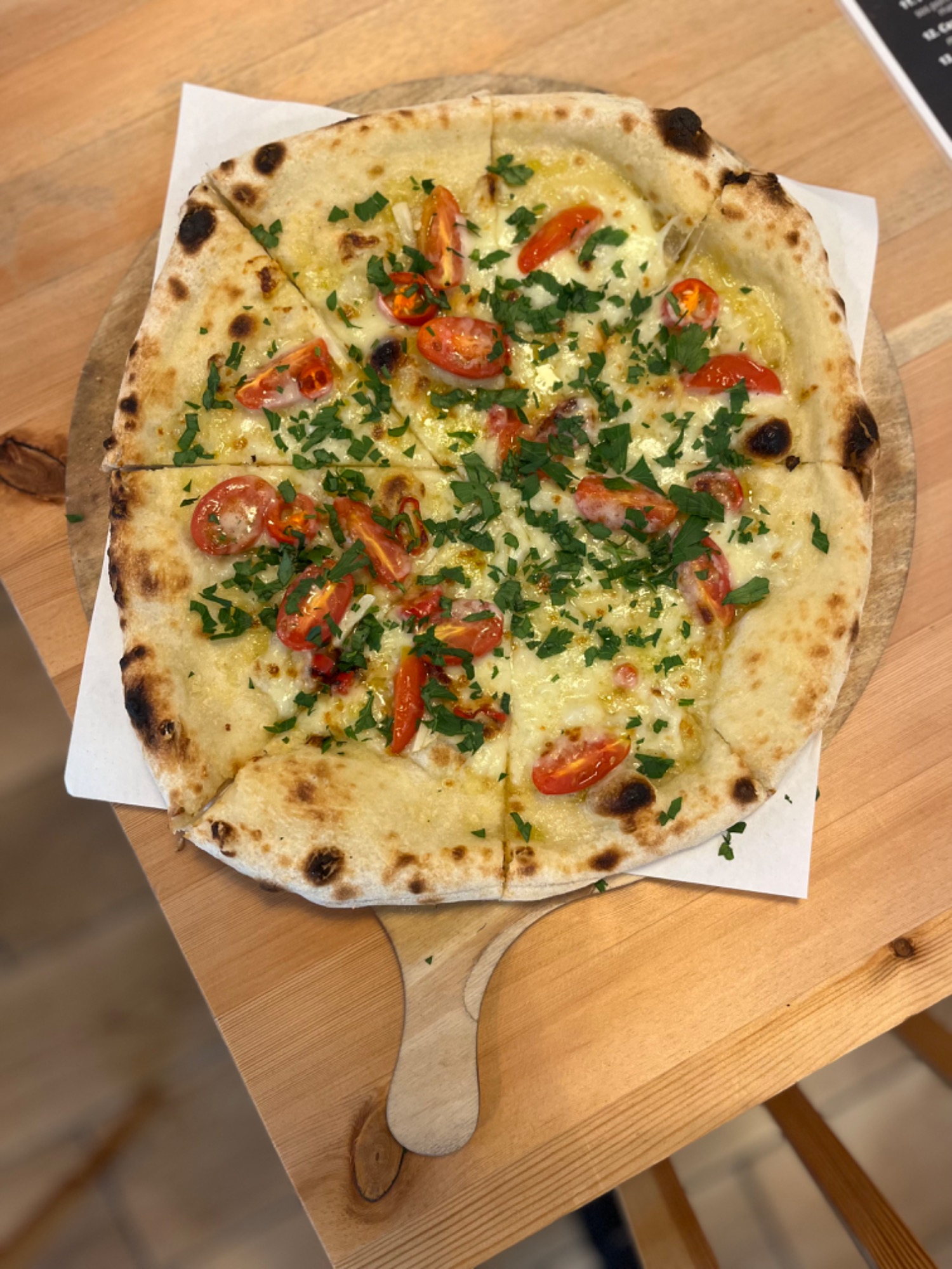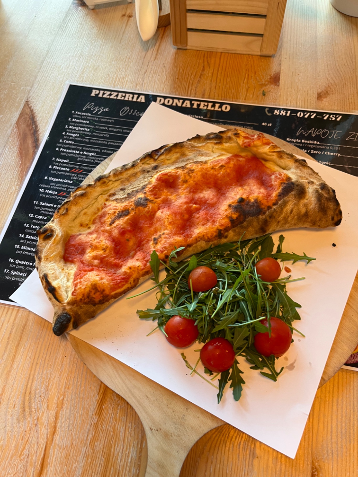 sos pomidorowy, mozzarella, pancetta-włoski boczek, cebula czerwona -